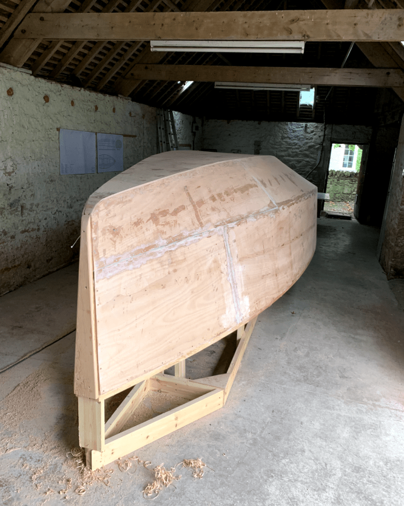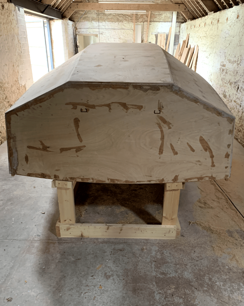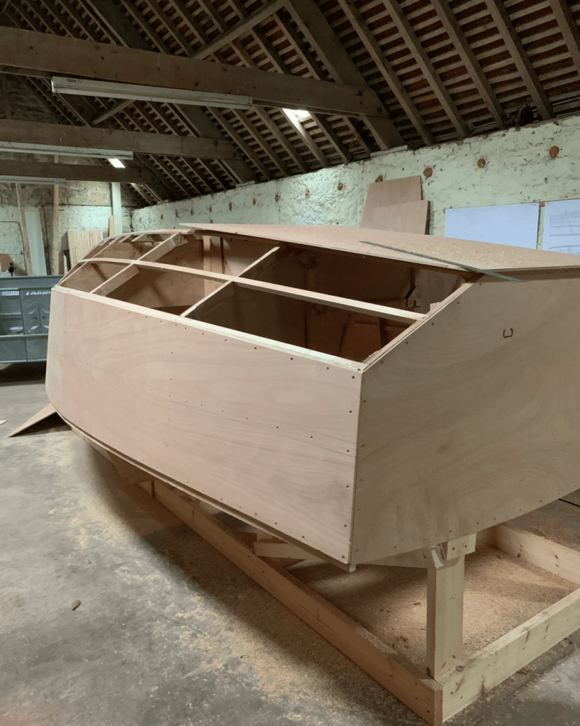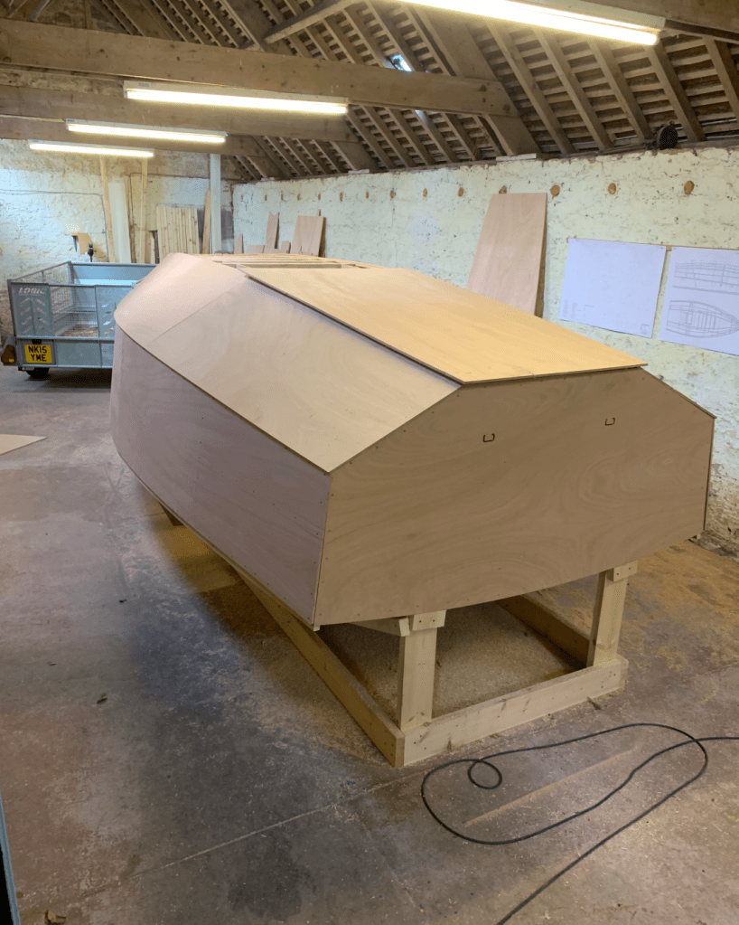 I don’t think my technique was the best but it eventually worked. I used clamps and straps to help and didn’t find any benefit from gradually bending the ply into shape. The process took much longer than I’d thought. Working alone again means things take more than twice as long. I spent two to three weeks on this phase.
